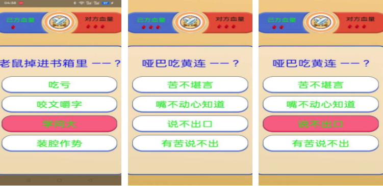 在日常生活中歇后語是非常常見的,歇后語挑戰(zhàn)能以比較趣味的一種形式,讓玩家了解大量的歇后語,游戲主打?qū)雇娣?,系統(tǒng)會隨機匹配對手,玩家需要做的就是,在題目出現(xiàn)之后快速選擇出對應(yīng)的答案,選擇正確之后就可以累計分數(shù),但一旦選擇錯誤就會扣除玩家的血量,血量歸零之后挑戰(zhàn)也會失敗。