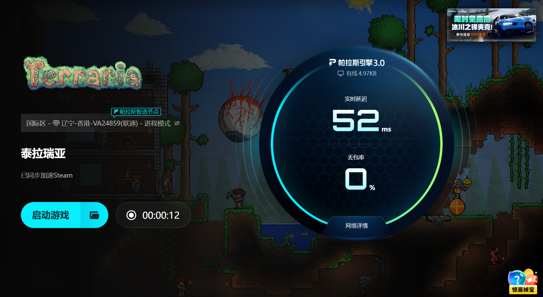 玩家的體驗表明,在使用biubiu加速器后,《泰拉瑞亞》整體運行更加流暢穩(wěn)定。原本在新建世界或進入洞穴探險時頻繁崩潰的情況大幅減少,資源加載更加順暢,角色動作和畫面反饋保持高度一致。即便在晚間高峰或跨區(qū)聯(lián)機的復(fù)雜環(huán)境下,延遲依舊維持在低水平,不再因為突發(fā)的網(wǎng)絡(luò)問題被迫中斷,玩家能更專注于探索與戰(zhàn)斗,而不是頻繁處理崩潰帶來的煩惱。