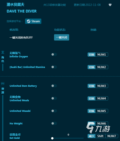 之后還有一些很有用的功能可以調(diào)整,例如自定義升級(jí)后帶來(lái)的屬性提升。還可以設(shè)置無(wú)限彈藥以及無(wú)線道具和電池等,大幅度提升你的戰(zhàn)斗力,讓你不用擔(dān)心出現(xiàn)火力不足的情況。這些都是海里的設(shè)置,如果是壽司店的設(shè)置就可以更改無(wú)限耐力,讓你可以24小時(shí)不間斷的工作掙錢。還可以瞬間就將菜肴做好,總之有了他就能讓你瞬間成為土豪玩家,直接封神!