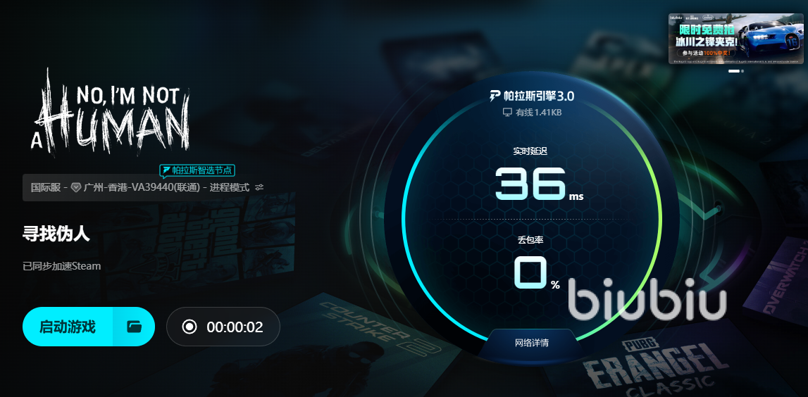 為提升本地網(wǎng)絡(luò)質(zhì)量,確保不發(fā)生丟包問題,biubiu引入目前最強的帕拉斯引擎3.0版本,利用引擎內(nèi)的智能系統(tǒng),對游戲所需網(wǎng)絡(luò)進行監(jiān)測,在發(fā)生異常問題時,會采用補發(fā)數(shù)據(jù)包方式,以最強形式避免發(fā)生丟保,避免一切問題的發(fā)生。
