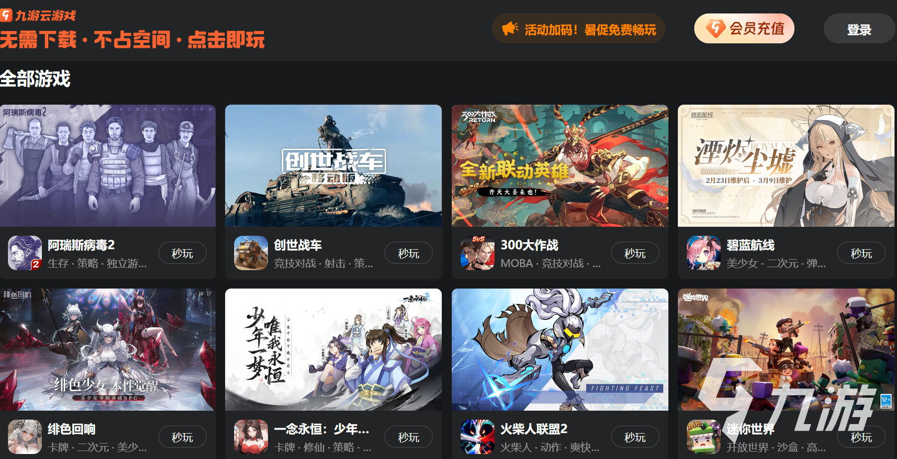 大家可以想象一下,如果大家的內(nèi)存不夠,但是也想玩游戲的話,那該怎么辦呢?如果大家單獨(dú)下載游戲,那么肯定會(huì)導(dǎo)致內(nèi)存不足而導(dǎo)致電腦卡頓,那么如果擁有一款九游云游戲平臺(tái)在這個(gè)平臺(tái)上有很多當(dāng)今熱門(mén)游戲,大家只需要一個(gè)軟件就可以玩多種游戲,那么這樣是不是要比下載單個(gè)游戲更加劃算呢?九游云游戲?qū)⒂螒蜻\(yùn)行在云端服務(wù)器上,大家只需要登錄賬號(hào)就可以享受高清流暢的游戲畫(huà)面和操作體驗(yàn),這樣的便利性不僅讓游戲體驗(yàn)變得更加自由,也不再被設(shè)備性能限制,無(wú)論是PC設(shè)備還是低端的設(shè)備,都可以輕松暢玩各種熱門(mén)游戲。