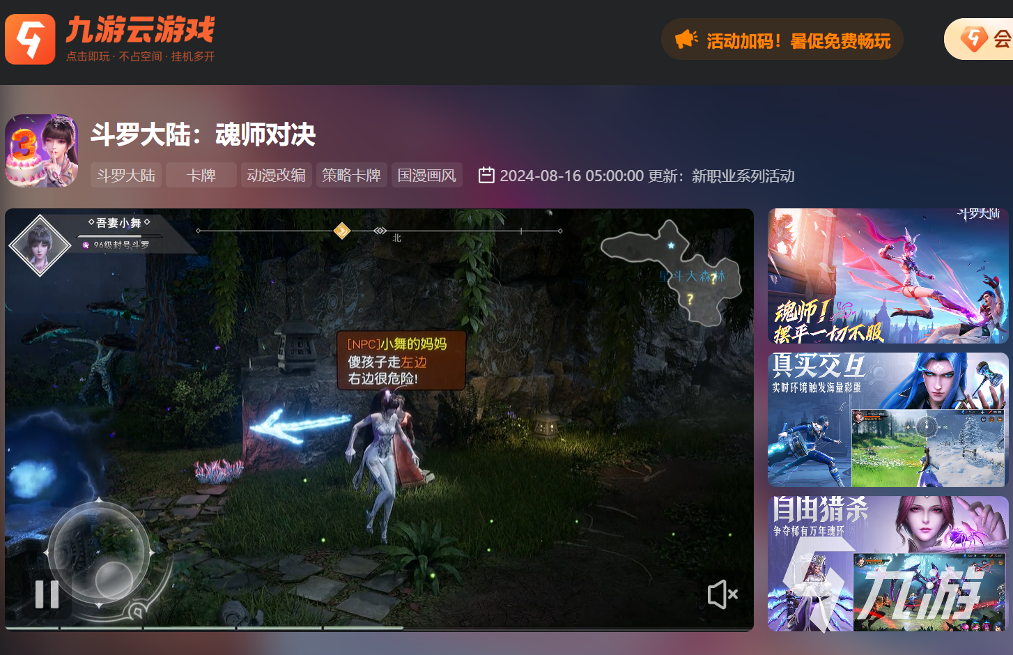 在斗羅大陸魂師對(duì)決中,這款游戲以豐富的角色系統(tǒng)和策略深度贏得了大量粉絲的喜愛(ài),有時(shí)傳統(tǒng)的設(shè)備配置和游戲運(yùn)行條件可能會(huì)限制大家的游戲體驗(yàn),大家都想玩斗羅大陸魂師對(duì)決云游戲,那么九游云游戲平臺(tái)的出現(xiàn),就為大家提供了一個(gè)絕佳的解決方案。