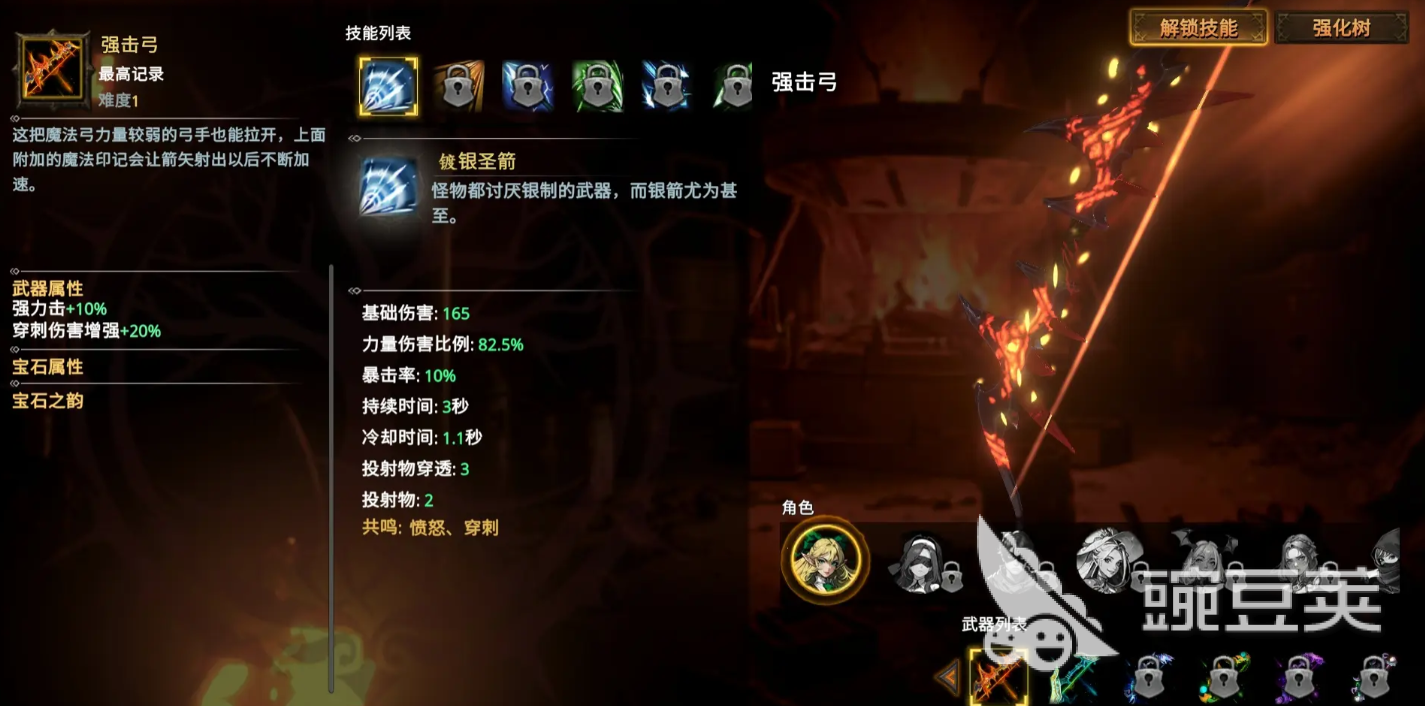 游戲每一個技能都具備有專屬的職業(yè)特性,例如,如果玩家在游戲內(nèi)選擇的是遠程弓箭手,則必須要升級強擊弓這一個道具,強擊弓又分為魔法弓以及物理弓,魔法弓被有更強的強力擊屬性,穿透能力極強,物理弓箭具備有更強的aoe攻擊能力。