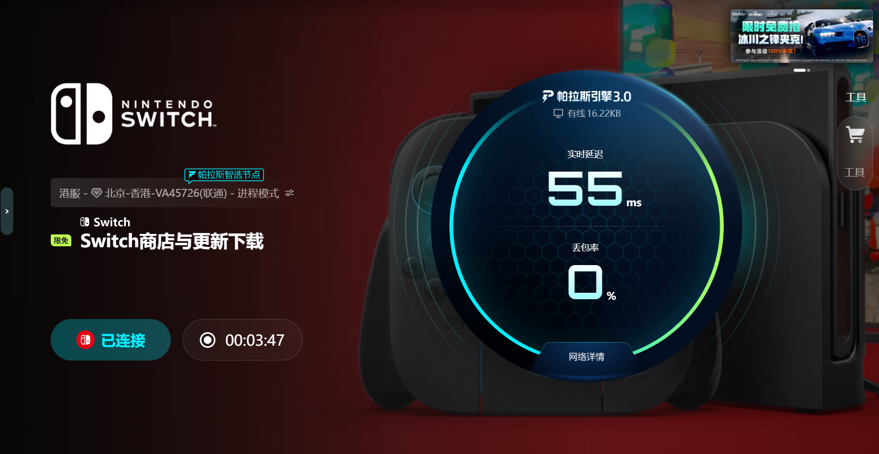 在實際測試下小編把加速打開設(shè)置好switch連接上biubiu加速器,switch的網(wǎng)絡(luò)變得十分穩(wěn)定,啟動流程連貫,從點擊進入到出現(xiàn)主界面,等待更短,補丁下載與賬戶核驗不易卡在中途;進入后游玩過程的偶發(fā)卡點明顯減少,偶爾遇到轉(zhuǎn)圈時間過長,返回主界面重連一次往往就能恢復(fù)。biubiu加速器支持多平臺多游戲的日常聯(lián)機,一次開啟,常駐省心。