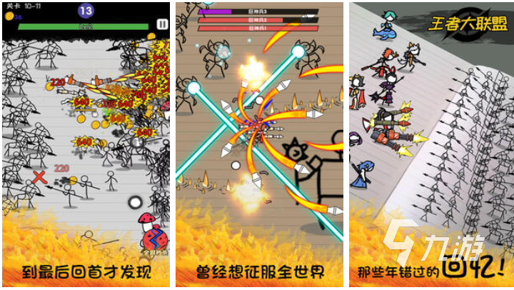 在這款火柴人主題的SLG游戲中你需要率領(lǐng)軍隊挑戰(zhàn)各種敵人,精致簡約的火柴人士兵在紙上混戰(zhàn)的畫面刺激性十足,黑白分明的背景塑造與不絕于耳的廝殺聲也是游戲的亮點,操控火柴人軍隊在紙張上征戰(zhàn)四方的感覺十分暢快,精致手繪的美術(shù)風(fēng)格讓這款火柴人系列作品更具辨識度,大亂斗一般的SLG玩法顛覆了玩家對于火柴人游戲的認知。