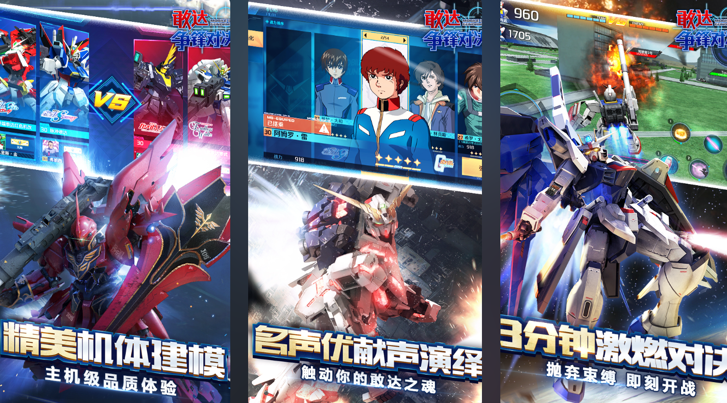 作為機(jī)甲題材的代表作,和傳統(tǒng)的第三人稱射擊不同《敢達(dá)爭(zhēng)鋒對(duì)決》給玩家一個(gè)操作高達(dá)的機(jī)會(huì),使用高質(zhì)量的3D渲染制作出機(jī)甲和場(chǎng)景。玩家可以自由地選擇來自不同高達(dá)系列的機(jī)體,每一架機(jī)體都有自己獨(dú)特的技能以及戰(zhàn)斗方式,不僅需要掌握機(jī)體攻擊方式,更需要注意掌握機(jī)體的防御、位移和技能冷卻時(shí)間,真正做到運(yùn)籌帷幄。除了玩法方面融合了槍戰(zhàn)、近戰(zhàn)和戰(zhàn)術(shù)對(duì)抗元素之外,戰(zhàn)場(chǎng)也不再局限于地面。