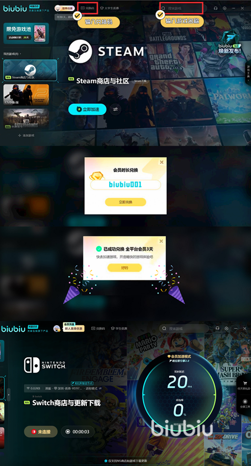 對于噴射4這類需要穩(wěn)定網絡的競技游戲,僅僅解決DNS問題還不夠。這時候就需要專業(yè)的游戲加速器來幫忙了。小編推薦你試試biubiu加速器,它能智能選擇最優(yōu)網絡路徑,將延遲顯著降低讓你在對戰(zhàn)中搶占先機。各位用戶現在使用小編分享給大家的兌換碼——【biubiu001】還能獲得72小時免費加速時間,再去疊加新注冊送的24小時,就能拿到最高96小時的免費加速時間了。而且biubiu為了慶祝switch2的發(fā)售,專門限時開啟了全部switch2全部游戲免費加速通道,大家快去體驗吧!