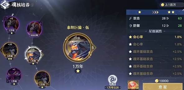 整體的系統(tǒng)是以養(yǎng)成為主,在這里給大家提供了秘境、獵魂、對(duì)決、共斗、宗門(mén)等豐富多彩的玩法,小伙伴們平時(shí)可以通過(guò)獵殺魂獸獲得魂環(huán)魂核,還能給魂獸帶上不同的魂環(huán)解鎖不同的技能效果,資質(zhì)也是可以加點(diǎn)的。