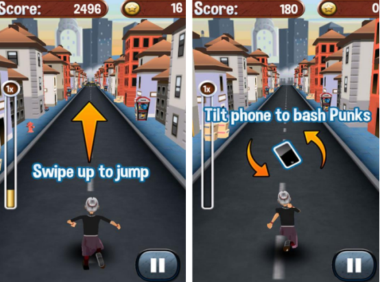 游戲的主角是一個憤怒的老奶奶,將置身于以城市街道為主的環(huán)境當中,為了幫助老奶奶順利的從被困的地方離開,玩家只需要移動手機的方式,就能控制著角色左右移動,也屬于通過重力感應的方式,來控制主角方向的。在跳躍的時候,也只需要向上滑動屏幕這一種方式即可。沿路上會遇到很多的障礙以及怪物,都需要正確的操作方法,才可以完成任務。