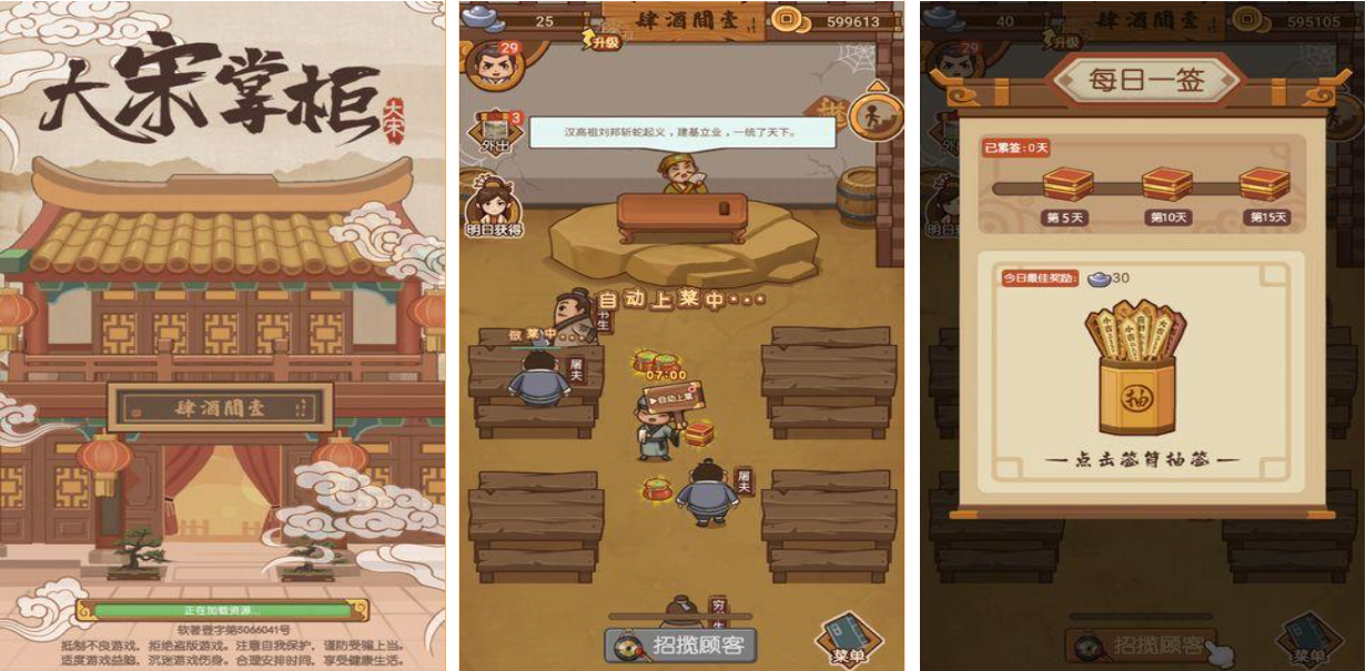 《大宋掌柜》還原了宋朝時(shí)期的各種畫(huà)風(fēng)場(chǎng)景,雖然地圖不大,而且其中能過(guò)挪動(dòng)的地方不多,但是對(duì)于經(jīng)營(yíng)類游戲來(lái)說(shuō)已經(jīng)算是很不錯(cuò)了,打擊可以在游戲中開(kāi)一家酒樓,前期在小二比較少的情況下還有自動(dòng)上菜的系統(tǒng)設(shè)置。