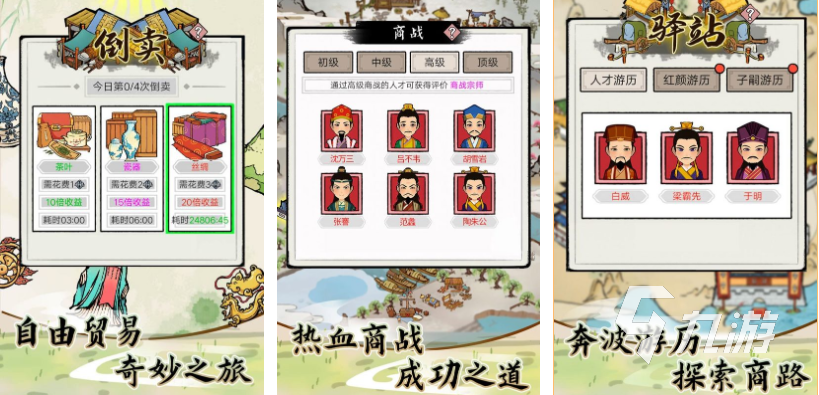 《叫我大掌柜》貿(mào)易自古以來(lái)都是一個(gè)來(lái)錢快的途徑,在這款游戲中你也是一個(gè)生意人,背景設(shè)置在宋朝時(shí)代,真正的宋朝時(shí)代哪個(gè)時(shí)候也是貿(mào)易行業(yè)很紅火,大家可以在游戲中招收各種門客為你合作經(jīng)營(yíng)買賣。