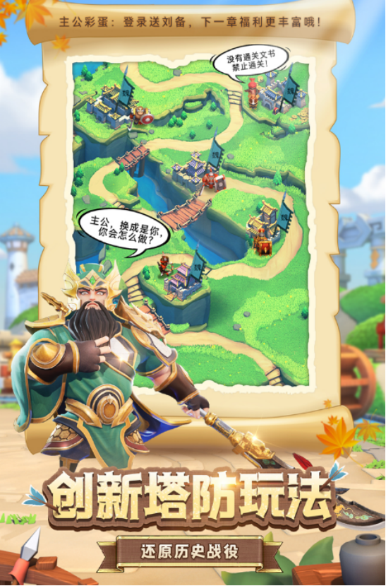 創(chuàng)新的塔防玩法,采用全新的三國題材,帶著玩家再次回到曾經(jīng)的古戰(zhàn)場,有上百位三國名將任意差遣,采用站前布局的方式展開獨特的戰(zhàn)斗,加入5v5公平競技陣容策略任意組合。另外又融合了肉鴿元素,掛機模式,但你享受真正躺贏的無限快感,眾多三國武將等你來暢享。