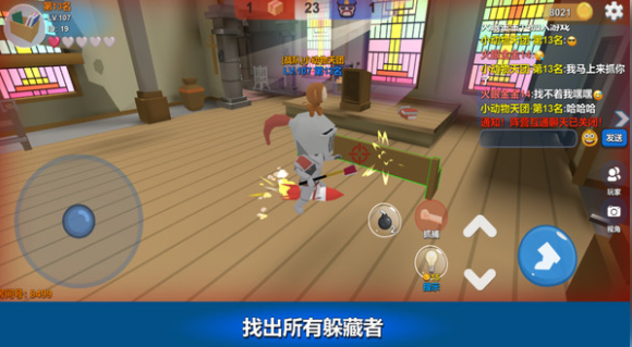 在這款多人在線躲貓貓的游戲中,大家可以選當(dāng)躲的人還是找的人。選好后,系統(tǒng)會(huì)隨機(jī)的給一個(gè)封閉的場(chǎng)地,里面好著很多可以躲的地方,躲的人需要趕緊利用身邊東西藏好,桌子底下、窗簾后面、甚至小柜子里都可以,找的人進(jìn)來(lái)后每一個(gè)角落都不能放過(guò),需要瞪大眼睛仔細(xì)搜尋,這款游戲講究的是策略,躲得巧妙找的仔細(xì)才可以贏,每次玩兒都有新的花樣保證讓大家玩的過(guò)癮。