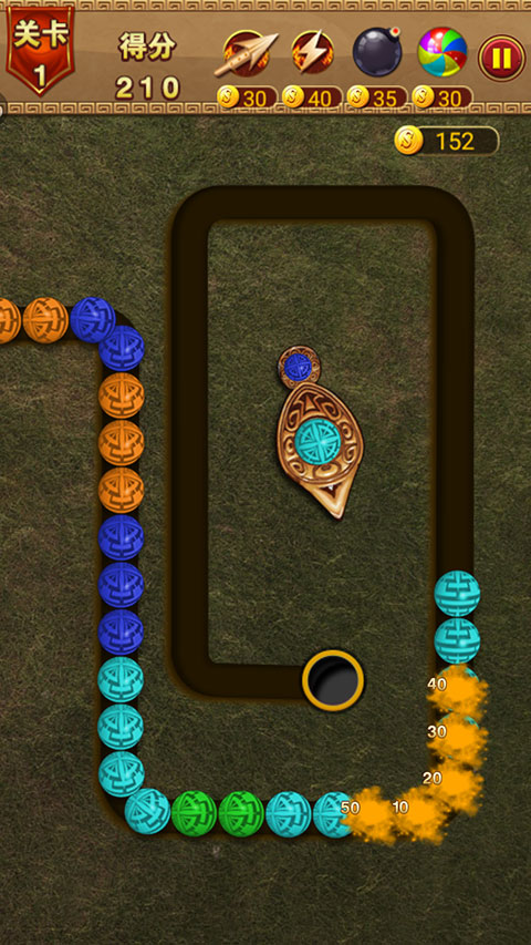 《祖瑪泡泡龍》游戲獨(dú)出心裁的將兩種各具代表性的消除玩法進(jìn)行了結(jié)合,又生成了兩種風(fēng)格獨(dú)具的挑戰(zhàn)模式,為大家?guī)砹烁拍罡赂娴南螒?,運(yùn)用了多種色彩對圖形背景進(jìn)行了渲染,尤其是在場景中間的青蛙,繼續(xù)延續(xù)了經(jīng)典祖瑪中滿身花紋的設(shè)定,游戲中的道具效果也相當(dāng)奇妙,有的能夠凍結(jié)軌道,有的則能夠穿透珠子進(jìn)行消除。