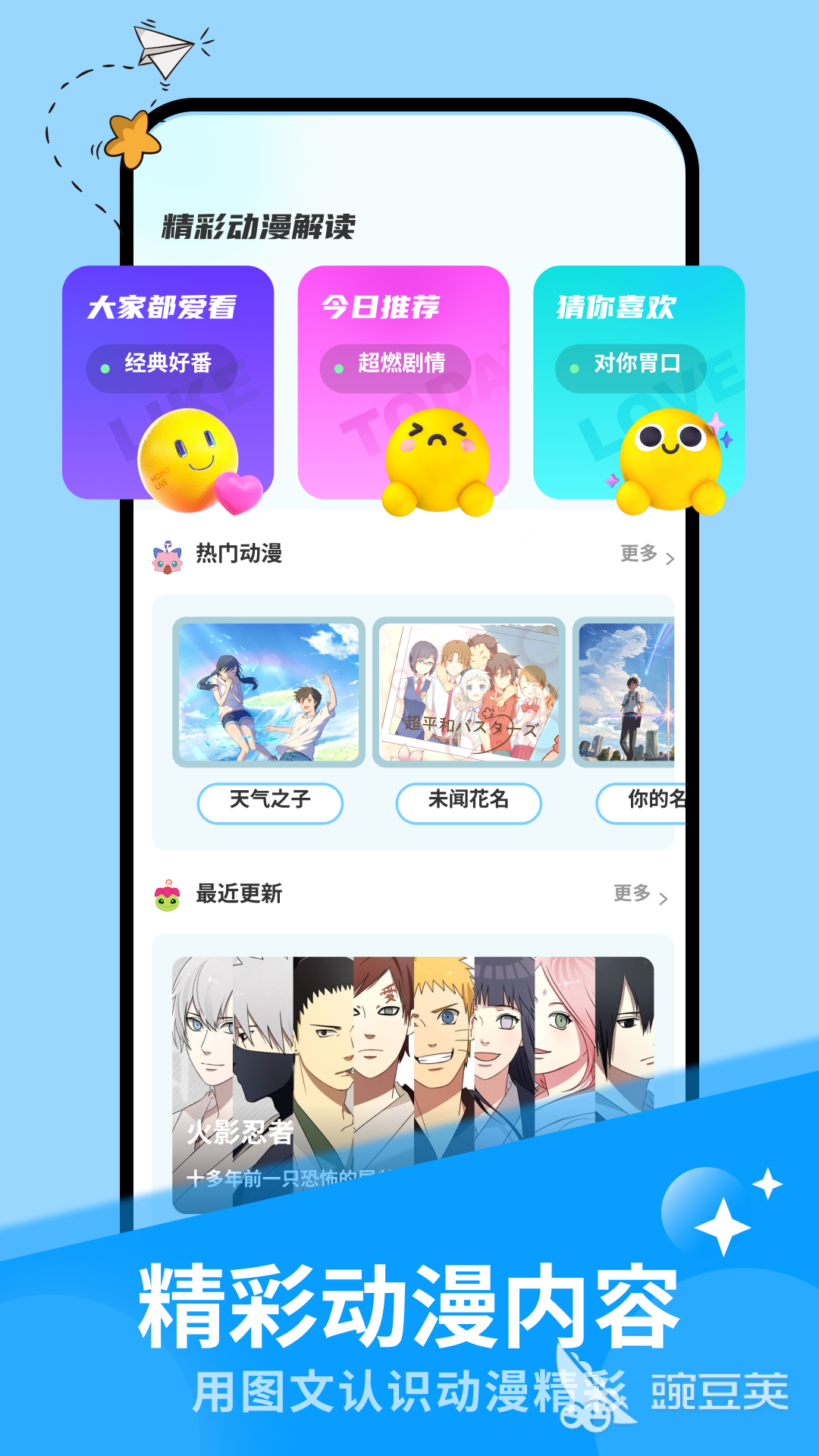 如果你不知道有什么作品值得看,那么入手這款軟件后,能讓你看個夠。軟件提供動漫推薦、人氣盤點(diǎn),不少老粉會分享自己的寶藏片單!這里的動漫解讀很精彩優(yōu)質(zhì),圖文解讀的形式更加便于你掌握情節(jié)哦。