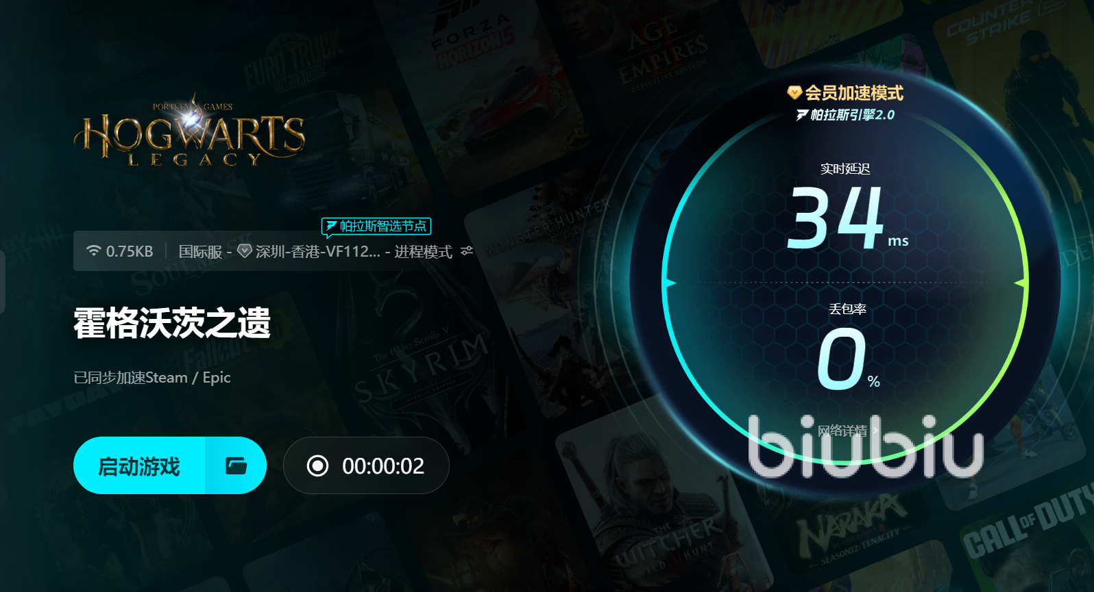 biubiu加速器極致簡潔的操作體驗讓玩家瞬間上手,下載安裝后只需在主界面輸入“霍格沃茨之遺”,即可一鍵添加游戲并自動匹配最佳加速節(jié)點,開啟專屬高速通道。加速后,網(wǎng)絡連接穩(wěn)定性大幅提升,游戲畫面流暢不卡頓,帶來極致沉浸體驗。更智能的是,biubiu內(nèi)置實時網(wǎng)絡監(jiān)控功能,清晰呈現(xiàn)延遲和丟包狀況,讓你隨時掌控網(wǎng)絡動態(tài),輕松優(yōu)化游戲環(huán)境,確保每次魔法冒險都暢行無阻,真正享受無間斷的極速游戲盛宴。