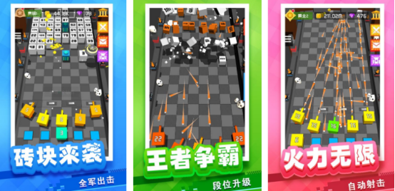 在奇特的方塊世界當中,將合成以及塔防的元素結合起來,玩家面對的就是步步緊逼的各種磚塊,在這些磚塊的威脅之下,需要通過合成裝甲的方式噴射出特別兇猛的子彈,從而將磚塊徹底消滅。有很多武器都支持了自動射擊,只要瞄準磚塊之后就可看到火力無限的炫酷感。