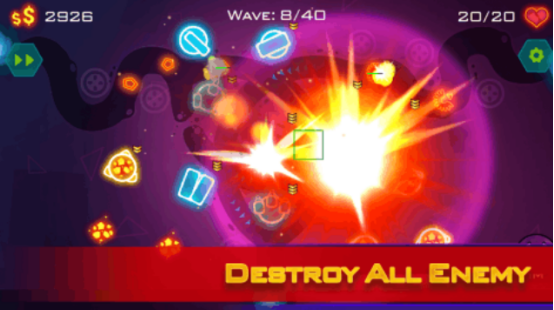 由精美的幾何圖形組合成的畫面,雖然畫面非常簡潔,但是游戲卻極具挑戰(zhàn)性,就連內(nèi)容都特別充實。講述的就是由幾何圖形形成的敵人洶涌來潮,給玩家造成了較大的傷害,因此玩家需要在奇特的游戲世界中,正確放置炮臺,將敵人打敗后就能保護好自己的幾何世界。