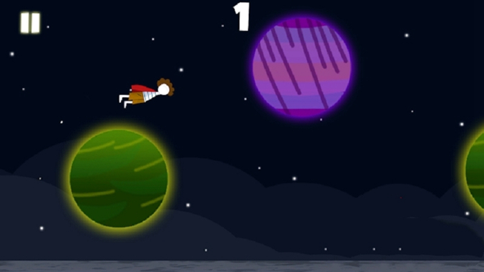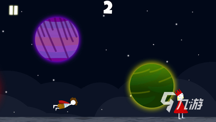 游戲的體積比較小,只有30MB不到,玩法也是十分簡單。打開之后點(diǎn)擊中間的播放鍵,就能夠開啟我們的尋愛之旅。玩家操控的是一個身披紅色斗篷的小王子,需要在浩瀚的宇宙中進(jìn)行飛行,點(diǎn)擊屏幕能夠控制小王子往上飛,釋放手指則會自動往下降,通過這種方式來控制角色躲避太空場景中的行星,安全達(dá)到終點(diǎn),回到小公主的身邊。