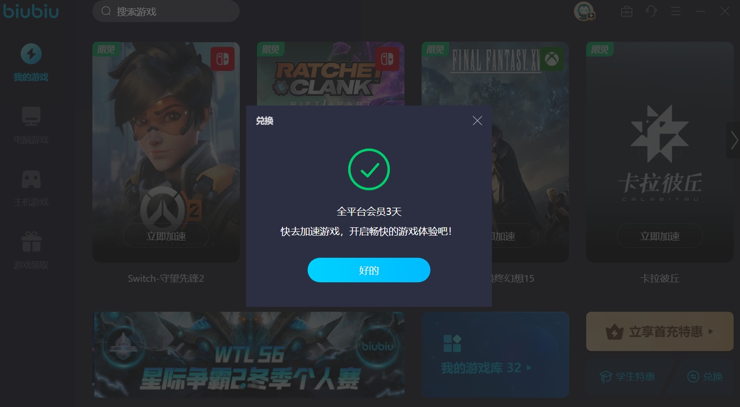 最近biubiu加速器官方為讓廣大用戶體驗(yàn)到流暢游戲的快樂,現(xiàn)在新人用戶注冊,可以領(lǐng)取24小時(shí)免費(fèi)加速福利。新老用戶還能使用以下小寫的兌換碼【biubiu不卡頓】額外地獲得3天免費(fèi)加速時(shí)長,疊加最高可享4天的加速時(shí)長,足夠讓你體驗(yàn)加速命運(yùn)碎片宿命,親自感受絲滑打游戲的與眾不同之處。
