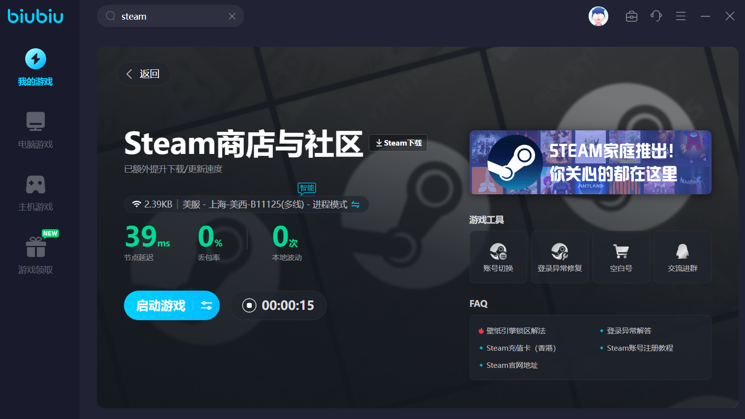 在進(jìn)入steam平臺的商店購買游戲之前,小編強(qiáng)烈推薦大家提前掛上biubiu加速器,可以智能加速網(wǎng)絡(luò),避免打不開商店、游戲更新不了、卡加載頁面等,因網(wǎng)絡(luò)不良造成的困境,順利購買命運(yùn)碎片宿命。