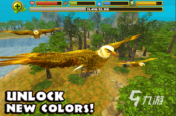《老鷹模擬器》這部作品把老鷹狩獵模擬的情景,進行了引人入勝的設(shè)計展現(xiàn),游戲中出現(xiàn)的所有的動物,在特征和叫聲上都進行了真實性的設(shè)計,玩家將操作老鷹帶入他們的視角,從高空俯瞰大地來尋找狩獵的目標,把老鷹的捕食行均精彩絕妙的模擬了出來,游戲中每一次狩獵不同的生物,都可以為老鷹獲得技能點。