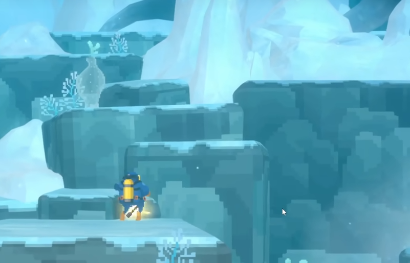 之后我們跟著發(fā)光水母前進(jìn),需要在側(cè)面找一個很難看見的洞,靠近這個洞口觸發(fā)第一步劇情。之后它會一直引導(dǎo)我們穿過冰洞,我們在到達(dá)第三個冰洞的時候便可以看到塞爾吉奧了。