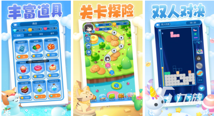 本作是款休閑性十足的方塊消除類游戲合集,三消模式、俄羅斯方塊和貪吃蛇等經(jīng)典玩法十分有趣,鮮艷的卡通背景和舒心放松的音效讓人耳目一新,簡單的控制系統(tǒng)和經(jīng)典的消除玩法吸引了大量粉絲,更有豐富的道具和多元化的玩法等待玩家上手體驗,新增的雙人對決玩法給了消除游戲愛好者對戰(zhàn)的機會。
