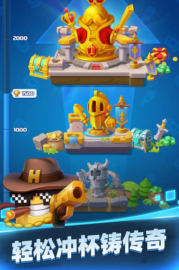 獨(dú)特的游戲沖杯模式,讓玩家們可以盡情享受戰(zhàn)斗的樂(lè)趣。獎(jiǎng)杯數(shù)量決定了玩家們所處的游戲段位,而通過(guò)戰(zhàn)斗獲勝則可以不斷累積自己的獎(jiǎng)杯數(shù)量。隨著獎(jiǎng)杯數(shù)量的不斷提高,玩家們面對(duì)的對(duì)手也將變得更加強(qiáng)大,不過(guò)在這一過(guò)程當(dāng)中,游戲也會(huì)對(duì)玩家們準(zhǔn)備了豐厚的獎(jiǎng)勵(lì)。