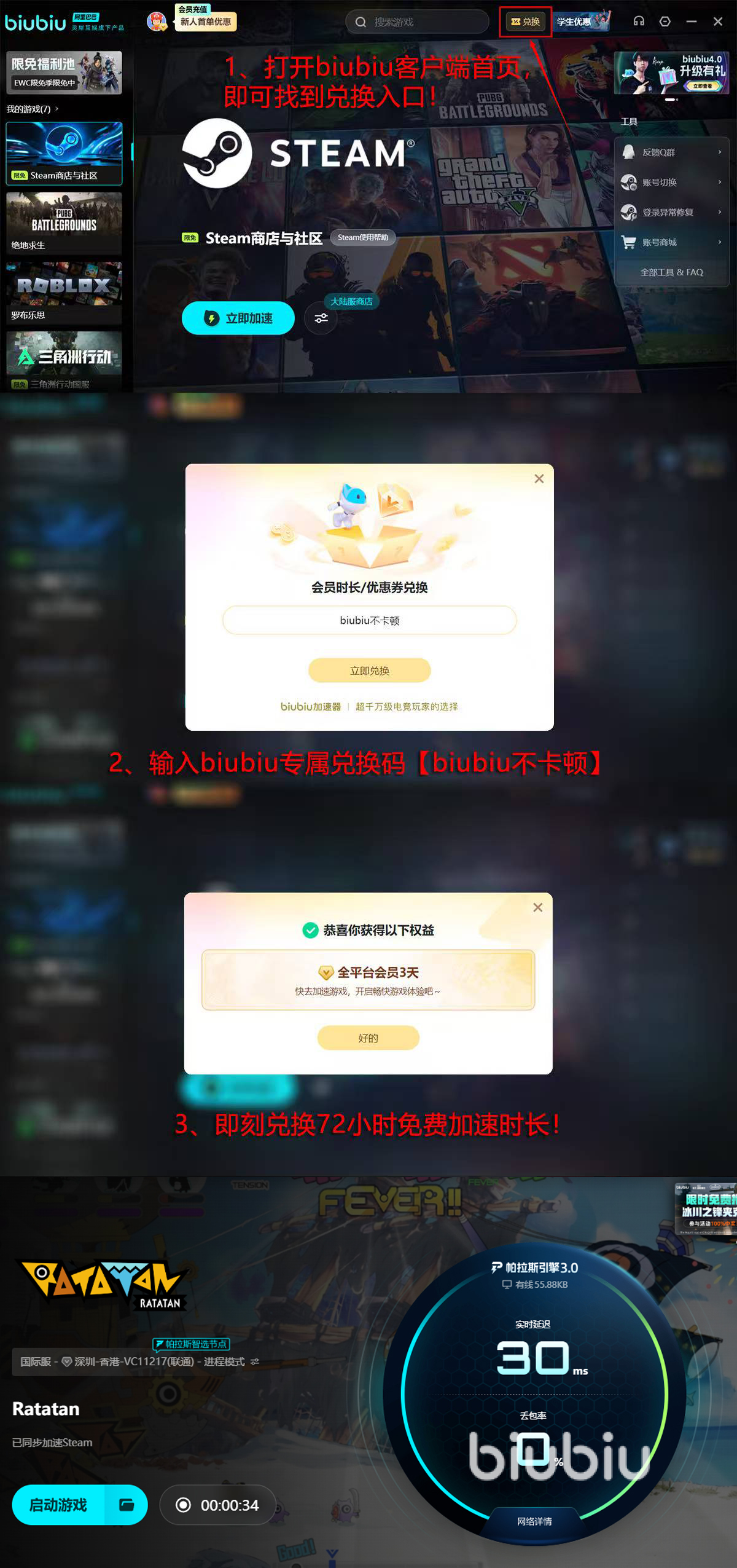 與此同時(shí),為提供更好的用戶體驗(yàn),biubiu冠軍選手Aixleft合作共同打造此次最佳版本,現(xiàn)在還邀請更多玩家參與,推出多個(gè)免費(fèi)很多用,現(xiàn)在注冊就送24小時(shí),且還能使用【biubiu不卡頓】再領(lǐng)一次3天免費(fèi)加速,需要注意的是,新人玩家2個(gè)活動(dòng)所得福利時(shí)間是可以累積的,有96小時(shí)。