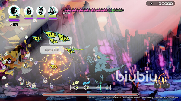 在擁有了良好的網(wǎng)絡(luò)后,那么Ratatan有哪些好玩的地方呢?首先,就不得不提鼓點(diǎn)機(jī)制,游戲沿用了此前的《啪嗒砰》系列作者研發(fā),研發(fā)了指令輸出戰(zhàn)斗節(jié)奏的方法, 玩家需要熟練掌握各個(gè)指令節(jié)點(diǎn),并在戰(zhàn)斗中與音樂節(jié)拍完美搭配使用,指令除了提供如攻擊、跳躍等攻擊動(dòng)作外,還有可以指令使用炸彈,鐮刀等,讓戰(zhàn)斗整體變得非常有趣。另外,游戲中增加了多人聯(lián)機(jī)版本,增加了社交屬性,支持隨機(jī)匹配和好友聯(lián)機(jī),讓游戲變得更有互動(dòng)性。