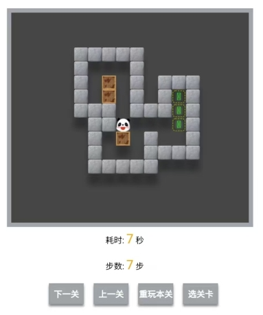 《推箱子3》是一款特別考驗玩家思維能力的單人游戲,在這款游戲里面玩家將會化作一個熊貓,在2d的地圖上將這些箱子推動至目標位置。玩家每次只能推動一個箱子,只有在規(guī)定的時間當中將所有的箱子,都移動至合適的位置才可以通過當前關卡,不過游戲并沒有次數(shù)限制,所以遇上比較難的關卡時,玩家們完全可以多次嘗試,直到最后成功將箱子推入終點。