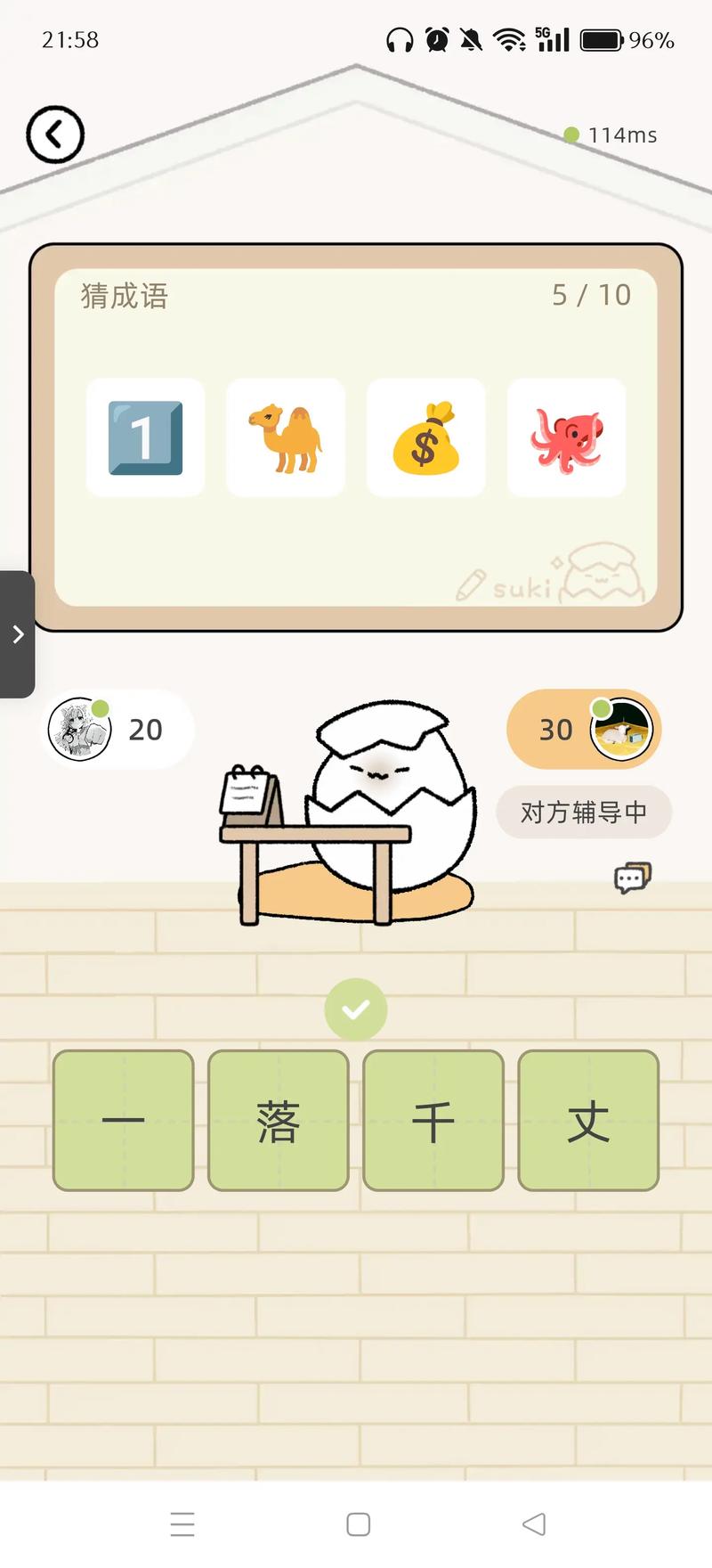 這款游戲玩法稍微有點(diǎn)復(fù)雜有任務(wù)環(huán)節(jié)在里面,不是單純地一個(gè)個(gè)地去猜成語,而是系統(tǒng)會(huì)給玩家一些數(shù)量限制的任務(wù)題目,在規(guī)定時(shí)間內(nèi)你需要不停地完成這些任務(wù)才能獲取更多的寶藏。每一個(gè)答對(duì)的成語都不是一個(gè)簡單的得分方式,會(huì)帶給你很多的獎(jiǎng)勵(lì),并且還會(huì)解鎖更多有趣的關(guān)卡和隱藏的成語,就像是破局而入一樣,時(shí)時(shí)刻刻都在往上爬的感覺,感覺自己就是一個(gè)小小的成語小富翁,在瘋狂的積攢自己的財(cái)富。