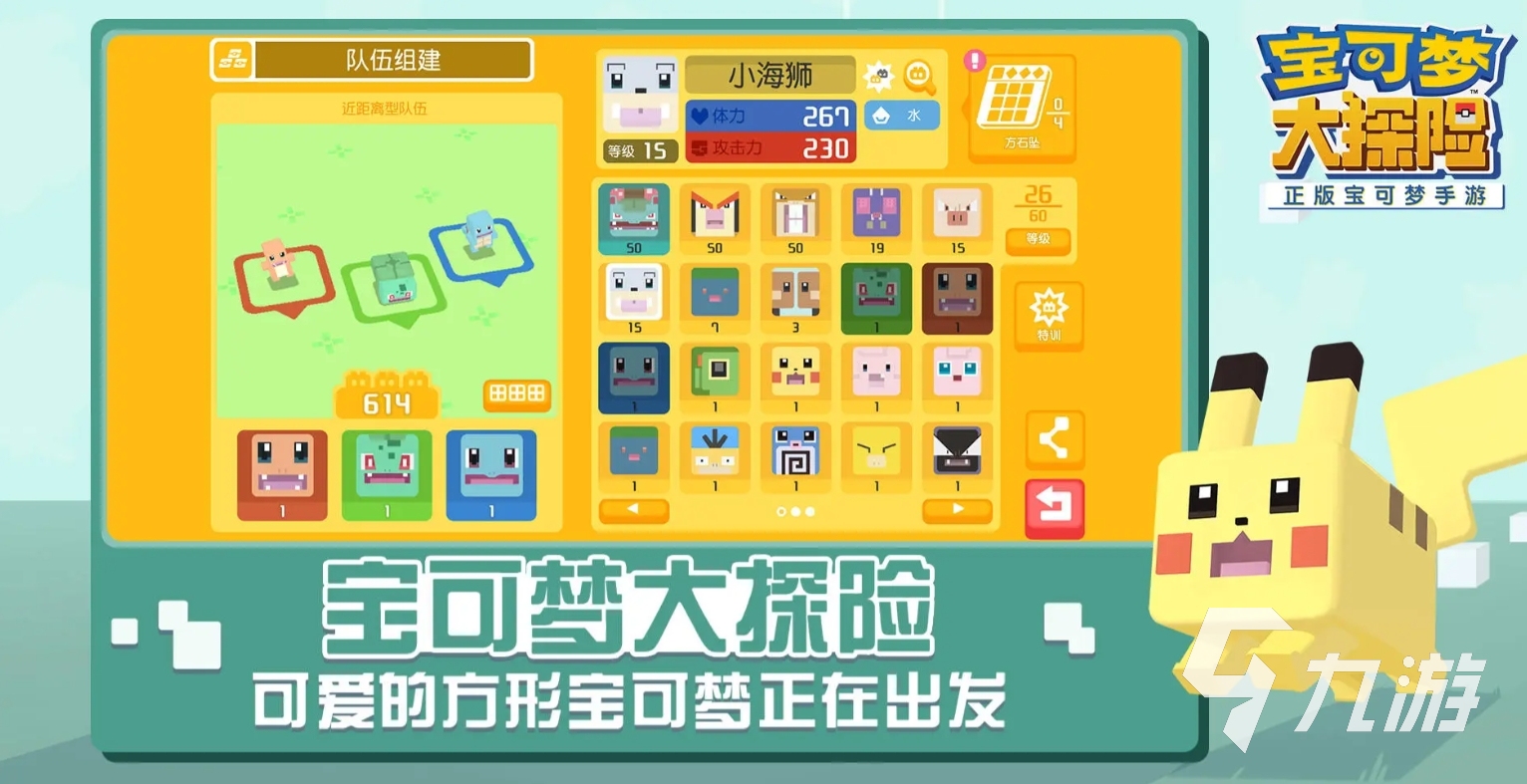 在這款寶可夢大探險里,玩家們會進入到一個方塊的世界,所有的寶可夢也都將變成方形,但依舊保留了它們那十分Q萌的形象。在這個世界里人們不光可捕捉寶可夢并訓練它們,讓它們代表自己參與各種賽事爭奪冠軍,還可在這座滿是寶可夢的島嶼上生火做飯,享受極為悠閑的生存時光,在寶可夢的世界里盡情地享受極為溫馨的冒險旅途。