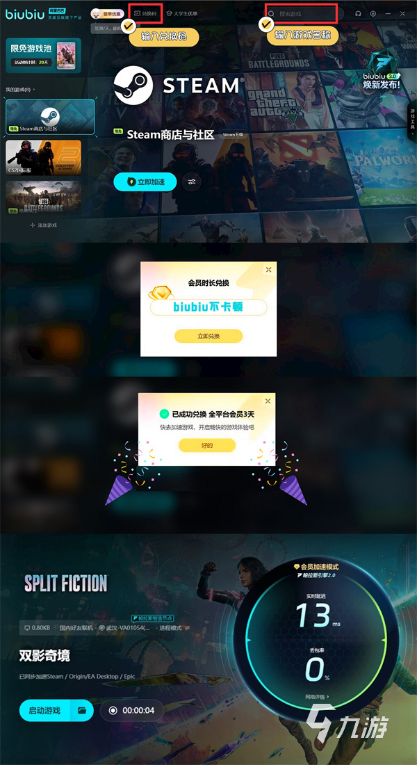 若是玩家希望到時(shí)可去解鎖更多加速福利,其實(shí)到時(shí)可考慮來點(diǎn)擊兌換,然后借助【biubiu不卡頓】,就能在對應(yīng)界面來順利領(lǐng)取到72h的加速時(shí)長,助力自己去長時(shí)間體驗(yàn)。