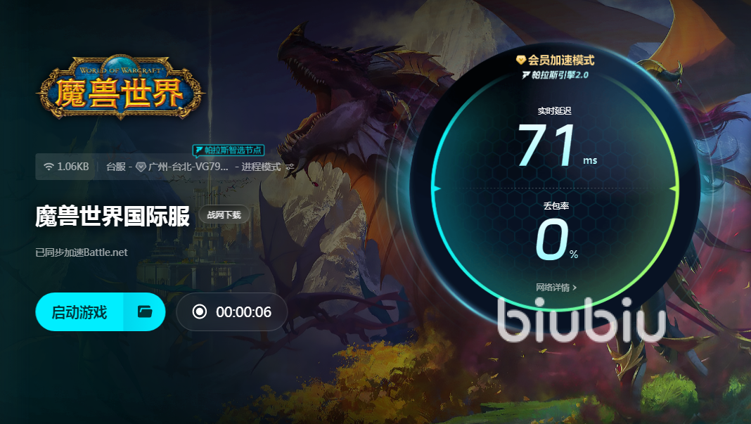 但是大家要注意這些設(shè)置并不是幫助大家改善當(dāng)前網(wǎng)絡(luò)的延遲情況,網(wǎng)持延遲是和網(wǎng)絡(luò)相關(guān)通過設(shè)置是不能解決的,只能通過加速器來進行優(yōu)化,biubiu就是非常適合的加速器工具。如果大家想要嘗試一下,那么抓緊注冊一個新biubiu號,因為現(xiàn)在新號能直接領(lǐng)三小時會員時間,這樣就能自身感受一下加速優(yōu)化后的網(wǎng)絡(luò)延遲效果。還給大家介紹另一項更可觀的福利,那就是每個號都能用一次的兌換碼【biubiu不卡頓】,通過這個兌換碼能兌換三天會員時間。Biubiu利用自身專線能夠快速實現(xiàn)數(shù)據(jù)從客戶端到服務(wù)器之間的交換,這對于WOW這款游戲來說絕對是非常有必要的,因為延遲過高就會導(dǎo)致施法不順暢,在戰(zhàn)斗中走位也會受到影響,而在流暢的網(wǎng)絡(luò)環(huán)境下可以更好地避開boss釋放的各種技能,技能銜接順暢舒服。