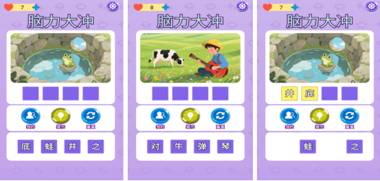 我國(guó)的文字文化擁有著深遠(yuǎn)的背景,現(xiàn)在很多游戲都是以文字為主要題材,而這款依舊也是如此,首先在開(kāi)局之后會(huì)看到栩栩如生的圖片,這些圖片會(huì)利用先進(jìn)的技術(shù),渲染出特別真實(shí)的背景,將成語(yǔ)故事刻畫(huà)的非常真實(shí),在下方又會(huì)看到隨機(jī)被打亂順序的文字,你只要將這些文字按照正確的順序填入進(jìn)去,回答正確后,可解鎖更高難度的關(guān)卡。