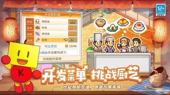 在游戲中玩家將扮演一位大廚,來(lái)到一個(gè)充滿(mǎn)了美食潛力的小鎮(zhèn)開(kāi)設(shè)自己的餐廳。游戲中最有趣的一點(diǎn)是,玩家需要在限時(shí)內(nèi)搭配食材制作出口味獨(dú)特的菜品。每個(gè)菜品的搭配都會(huì)呈現(xiàn)出不同的效果和味道,玩家需要根據(jù)顧客的需求和反饋,不斷調(diào)整菜品的組合,以提升自己的廚藝和贏得更多的顧客。在經(jīng)營(yíng)過(guò)程中,玩家可以獲得報(bào)酬,用來(lái)專(zhuān)修和裝飾自己的店鋪。