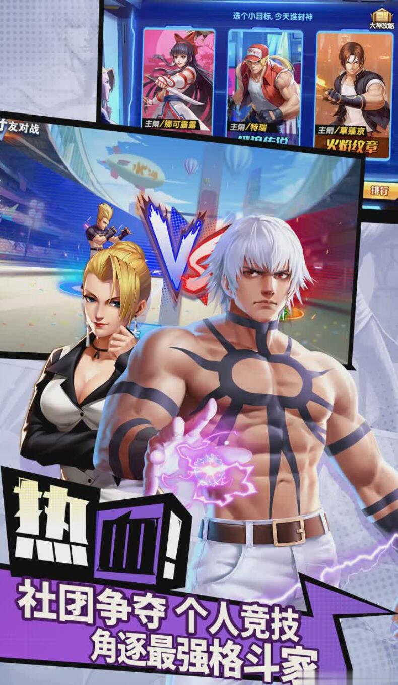 這款騰訊代理的卡牌手游突破傳統(tǒng)格斗框架,以角色收集與陣容搭配為核心。玩家需組建由草薙京、八神庵等角色構(gòu)成的六人戰(zhàn)隊(duì),利用攻防技克制關(guān)系制定戰(zhàn)術(shù)。游戲獨(dú)創(chuàng)“神器系統(tǒng)”,草薙劍、八咫鏡等道具可全局提升隊(duì)伍屬性,而“社團(tuán)戰(zhàn)”與“跨服爭奪戰(zhàn)”則強(qiáng)調(diào)團(tuán)隊(duì)協(xié)作與資源爭奪。相較于其他拳皇手游,其戰(zhàn)斗偏向自動(dòng)回合制,側(cè)重養(yǎng)成策略與資源分配,適合偏好休閑操作的玩家。