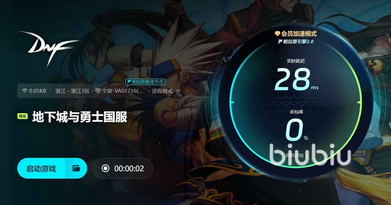 以上就是地下城閃退用哪個(gè)加速器好的分享,對(duì)于地下城與勇士這款游戲而言,在連接過(guò)程中本身就是經(jīng)過(guò)了多個(gè)端口之后的,在游戲過(guò)程中要是有點(diǎn)小波動(dòng)的話,閃退是必然的。在這種環(huán)境下,就不得不提一下biubiu的加速效果了,既加速快又加速穩(wěn)定。