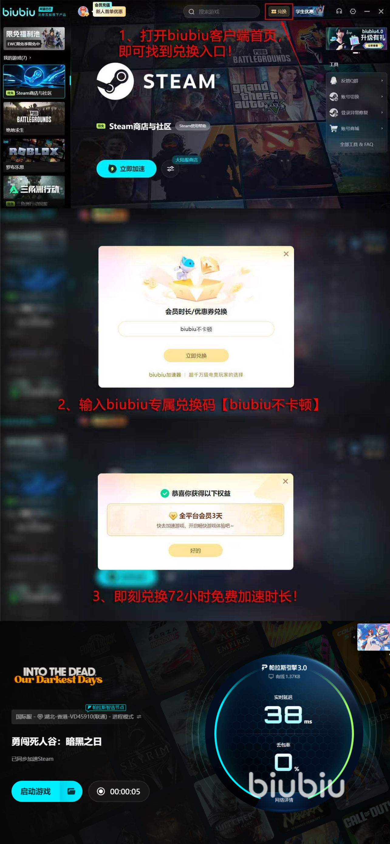 上方給大家提供的加速器對于大家體驗游戲是有不少幫助的,首先就是穩(wěn)定網(wǎng)絡(luò),讓大家無懼網(wǎng)絡(luò)不動所造成的各種問題,此外就是能讓大家流暢的進行操作。如果是新人登錄注冊,立刻就有24h提速服務(wù),此外平臺還給每個用戶額外提供3天加速時長,只需要大家在兌換區(qū)域輸入【biubiu不卡頓】。還進行了全新升級,平臺和Aixleft這位人氣冠軍選手一起合作推出了新的帕拉斯引擎3.0版本,讓玩家可以享受更加舒適的游戲環(huán)境。