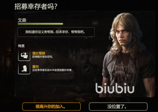 新增了驅(qū)逐幸存者的功能,在避難所里可以清除不需要用的角色,最后一人被清除的話,游戲結(jié)束。有新的投擲物上線,鞭炮,鬧鐘以及一些可以制作的簡易定時器和手榴彈。新增了招募幸存者文森和零部件以及種子,現(xiàn)在升級避難所的設(shè)施需要用零部件,大家需要外出從各種物資點獲取,而種子則用于菜園種植,可以在多處收集。