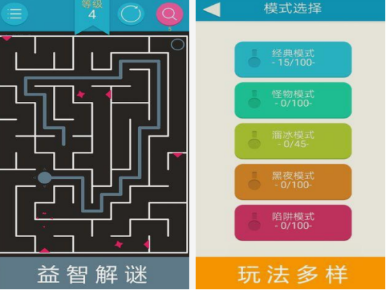 將解謎以及迷宮的元素進(jìn)行了巧妙的結(jié)合,搭配上清新的音樂(lè),讓玩家在冒險(xiǎn)的時(shí)候,享受不一樣的體驗(yàn)。通過(guò)簡(jiǎn)單的操作方法,從起點(diǎn)出發(fā),將紅色的小圓點(diǎn),通過(guò)迷宮的環(huán)境中,正確的選擇線(xiàn)路以后,找到出口,就可以完成解密冒險(xiǎn)的任務(wù)。有超多的色彩以及獨(dú)特的迷宮設(shè)計(jì),要在冒險(xiǎn)的時(shí)候合理的使用道具,才能在規(guī)定時(shí)間內(nèi)完成。