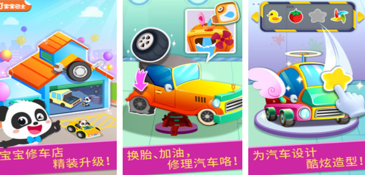 寶寶修車店一看就知道是給小朋友玩的,車子都是圓滾滾的卡通造型,連工具都畫得像玩具一樣,小朋友玩的時(shí)候不用懂復(fù)雜的修車知識(shí),比如車胎沒氣了,只要點(diǎn)一點(diǎn)屏幕上的打氣筒,看著氣一點(diǎn)點(diǎn)充滿就行,車燈壞了把新車燈拖到原來的位置,咔嗒一下就裝好了,修完車還會(huì)有小獎(jiǎng)勵(lì),會(huì)覺得特別有成就感。