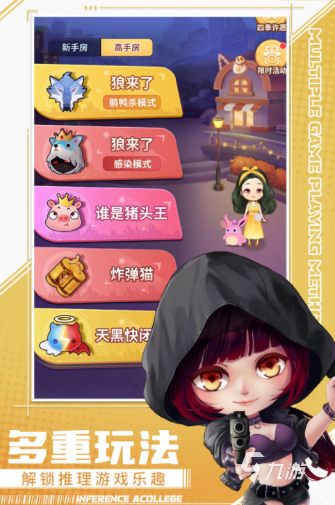 這里全都是真人玩家,大家可以碰到好多有趣的小伙伴,說不定還能遇到心儀的帥哥美女。游戲里有超多的職業(yè)可以選,還有好幾種不同的玩法模式,甚至還可以養(yǎng)寵物,一起陪我們玩推理。每個(gè)關(guān)卡都有個(gè)難題等著大家,要仔細(xì)觀察才能推理出真相,游戲用了全新的3D建模,看起來既卡通又有趣。要是我們賺到了足夠多的金幣,還可以直接跳過難關(guān)。