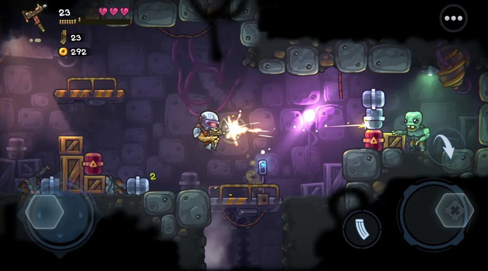各位將前往滿是僵尸的洞穴里完成營(yíng)救幸存者和解決僵尸強(qiáng)敵的重任,享受極為暢快的橫版射擊玩法。此作有著與合金彈頭類似的街機(jī)模式,只需將沿著關(guān)卡所設(shè)計(jì)好的路線將僵尸全部消滅,并在擊敗關(guān)卡內(nèi)的強(qiáng)敵后就能順利過關(guān),同時(shí)關(guān)卡里還會(huì)有幸存者為各位帶來眾多強(qiáng)力的槍械武器,讓各位能更有效率地去完成擊殺僵尸的任務(wù)。此外,這款作品里有許多能破壞的地形,還可利用該機(jī)制來消滅僵尸。