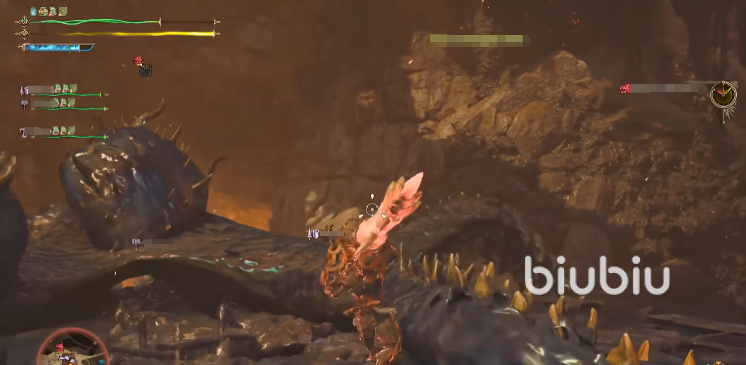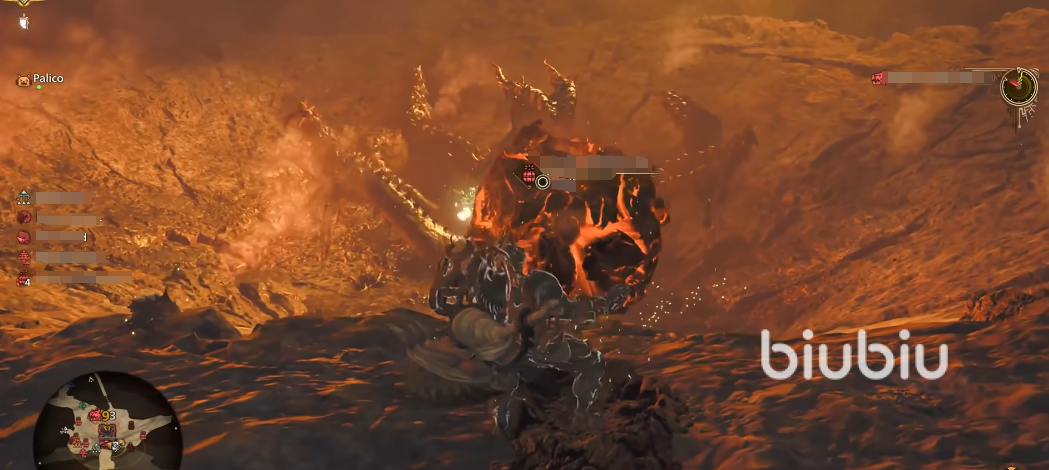 黑炎初始的位置有倆個(gè),劇情觸發(fā)后點(diǎn)火區(qū)域在爆炸的深坑里面。深坑周圍有燃石可以投擲,可用來打第一波傷害,借助斜坡滾下去觸發(fā)爆炸就好。周圍最起碼有四個(gè)拋投點(diǎn)。另一個(gè)區(qū)域則是在泥潭公共區(qū),周圍會(huì)有其他怪物出現(xiàn),比如赫猿獸,非常容易有共斗情況出現(xiàn)。開局中間有閃光蟲可以使用,黑炎一開始就是吼叫,分為點(diǎn)燃和未點(diǎn)燃兩種狀態(tài),未點(diǎn)燃的招式比較好辨認(rèn),觸手舉起來之后下壓抓住對(duì)手,之后噴火。