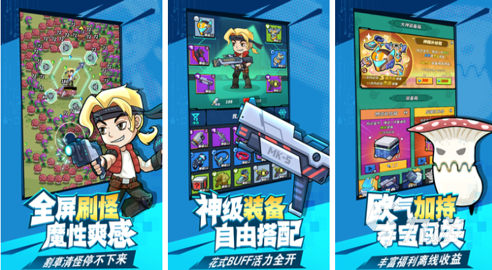 這款豎屏單機射擊游戲爽快感十足,畫風可愛又魔性而且武器種類很多,裝甲、護膝以及武器等裝備你可以自由搭配,每隔一段時間還可以免費開啟寶箱,寶箱中有幾率開出非常稀有的裝備喲。這款射擊游戲方方面面都有惡果之地的影子,卡通的風格和花式的玩法非常吸引人,想盡情體驗魔性刷怪的樂趣嗎?那就下載合金子彈玩玩吧。