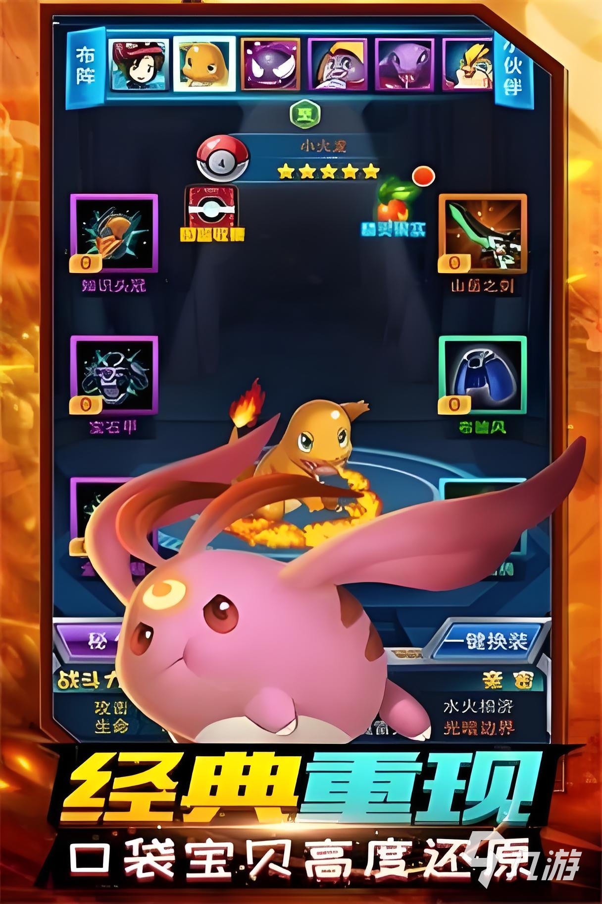《口袋超萌》是一款完美復刻了口袋妖怪題材的養(yǎng)成rpg游戲,各種經(jīng)典的動畫場景和小精靈在游戲中都可以看到,玩家可以對他們進行收集并培養(yǎng),游戲內(nèi)的玩法眾多,玩家不僅可以召喚寶可夢與其他玩家實時對決,還可以參加各種道館挑戰(zhàn)及聯(lián)盟爭奪等副本玩法,而且游戲中的寵物既可以修煉進化,還能裝配超多的厲害裝備。