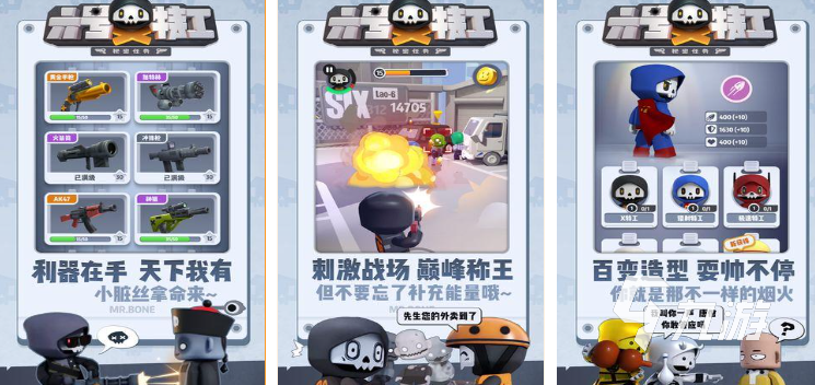 這款特工游戲里大家將變成次時(shí)代的特工,大家將在游戲里領(lǐng)取任務(wù)。然后拿起自己手里的槍械來對付邪惡的臟絲。特工們大多都是骨頭的形象,非常的搞怪又好玩。大家可以為自己的小特工們裝備許多武器,比如威力強(qiáng)大的火箭筒,還有善于隱藏的黃金手槍。大家要根據(jù)不同的任務(wù)場景來選擇適配的武器哦!